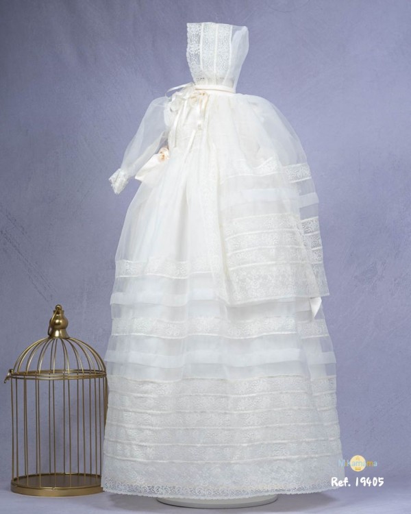 Faldón encaje y pelele organza